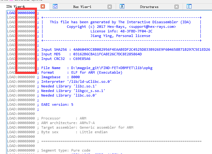 可见,加载基址就是0,丢ida验证: