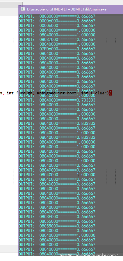PFET fet = find_fet(bin, 0, size, wnd, gap); //CTL5: 窗口 和 gap PFET ptr = fet->next; pone_tbl p_tbl; int i=0,j; do{ p_tbl = get_tbl(bin,ptr); if (boot == 0) dbmfet(bin,size,p_tbl,T); //CTL6: 阈值 else dbmfet_boot(bin,size,p_tbl,T,boot); //CTL6: 阈值 free(p_tbl->addr); free(p_tbl); ptr = ptr->next; i++; }while(ptr); printf("%dn", i); puts("end"); }