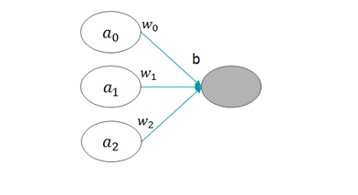 上图中,a表示输入层的激活值,w表示相应连接上的权重值,其下标表示它们在向量中的位置。此外,我们还看到灰色神经元左边还有一个字母b,它表示什么呢?这是一个常数,通常称为偏置项。它实际上就是每个神经元所特有的一个偏差值,该值越大,该神经元越容易被激活。
