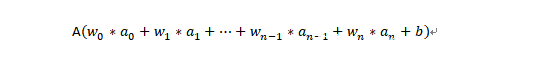 也就是说,当前神经元的输入就是上一层的激活值加权求和,然后加上当前神经元的偏置项。假设当前神经元采用的激活函数为A,那么,其激活值的计算公式为:
