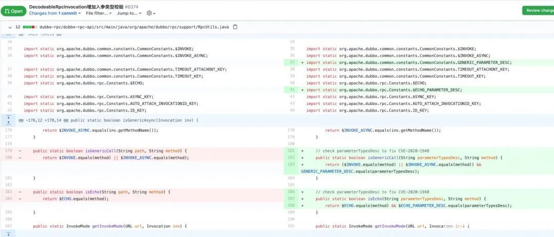 北京时间2020-6-22日Apache官方发布了Dubbo 2.7.7版本,其中修复了一个严重的远程代码执行漏洞(CVE-2020-1948),这个漏洞是由腾讯安全玄武实验室的ruilin提交,该漏洞允许攻击者使用任意的服务名和方法名发送RPC请求,同时将恶意序列化参数作为有效载荷,当恶意序列化的参数被反序列化时将执行恶意代码。该漏洞与 CVE-2017-3241 RMI反序列化漏洞有点类似,都是在远程调用过程中通过方法参数传入恶意序列化对象,服务端在解析参数进行反序列化时触发。Dubbo Github Star数量32.8k,知名度不亚于fastjson,被大量企业使用,包括一些知名互联公司,漏洞影响十分广泛。