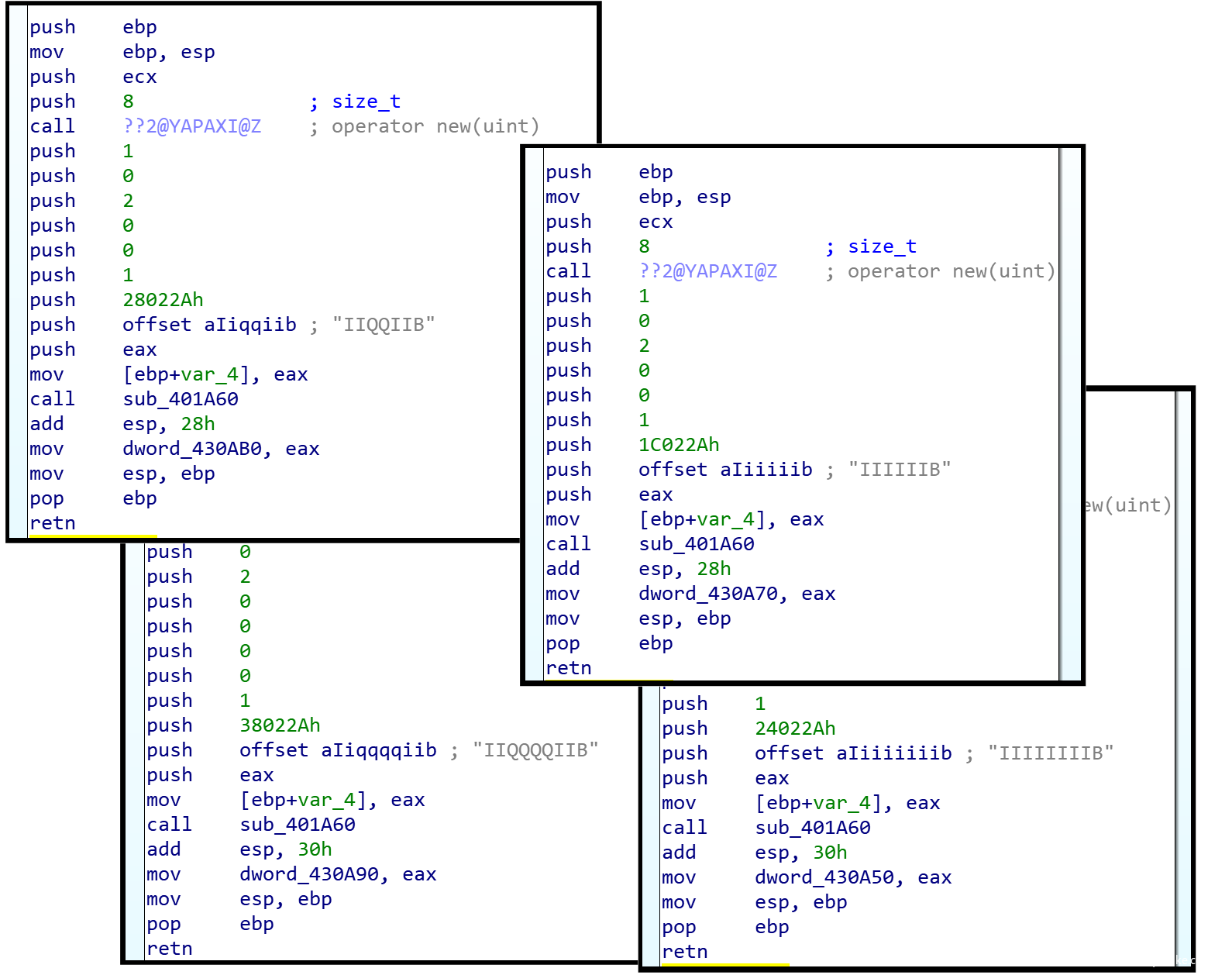当运行Olympic Destroyer时,恶意软件会在运行时加载这些结构体,但并没有使用它们。显然,开发者听说过EternalBlue PoC,但为什么留下这些结构仍然原因不明。可能开发者想为安全分析师制造一个陷阱,将他们引入错误的方向。或者这是某些未完成的功能所遗留的痕迹,没有衍化为最终版本的恶意软件。