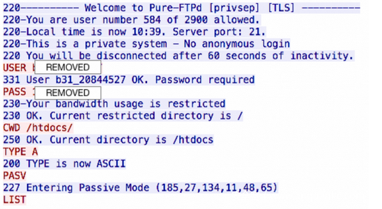 被划定到SYSCON家族的恶意载荷通过FTP服务器与ftp.bytehost31[.]org via这个恶意服务器进行连接,以接收远程控制命令。