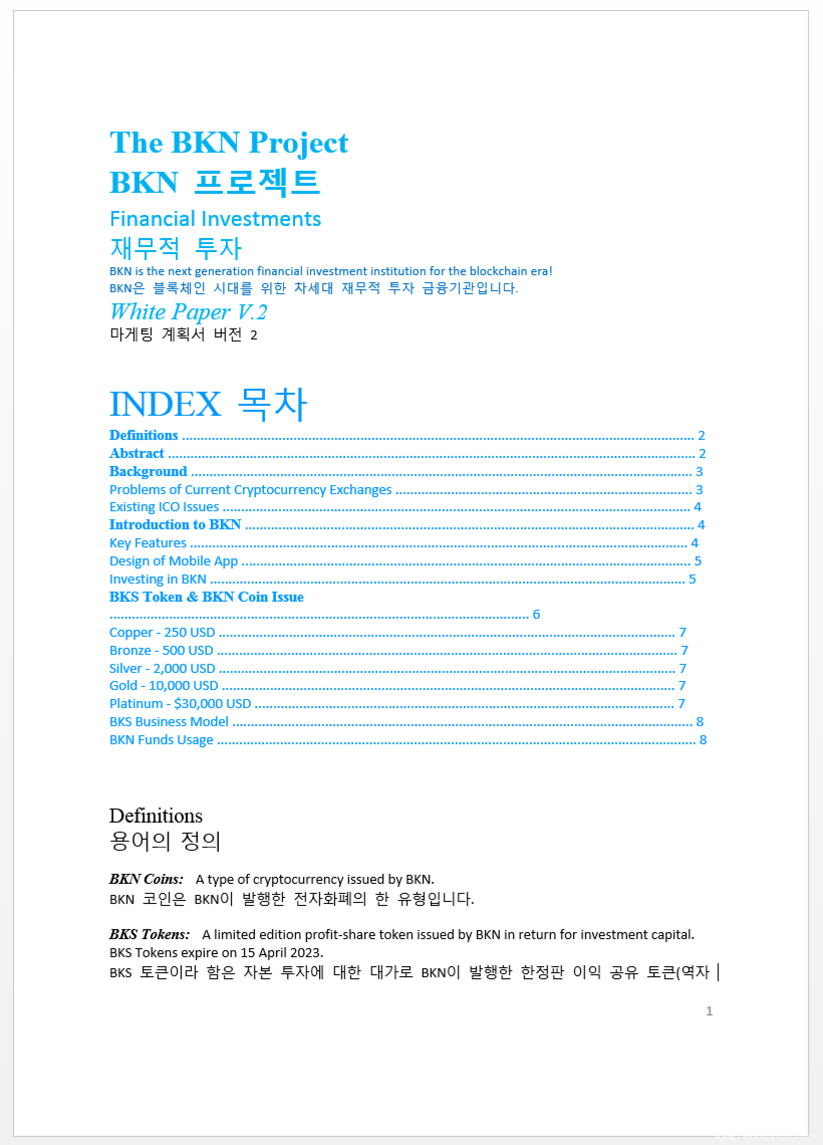 在此样本中使用了.hwp文件扩展名的文档作为诱饵文档。在诱饵文件被放入到磁盘后,它将在一个新进程中被打开。随后会给受害者显示这个.hwp诱饵文档:BKN Bank加密货币交易的白皮书。