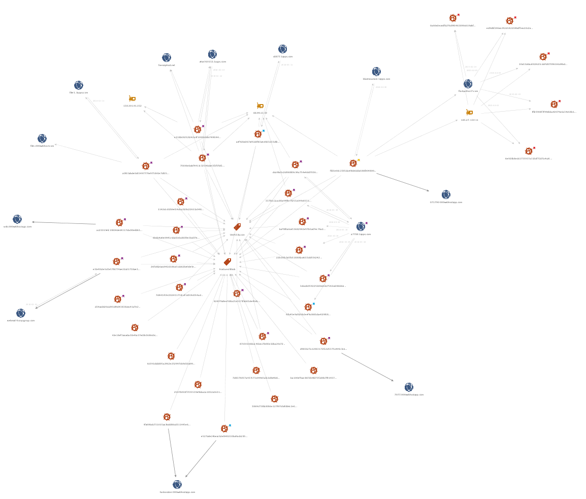 上文反复提到的另一种关联是SYSCON恶意软件。这个恶意软件首次在2017年10月被报道,并且已经观察到了攻击中提供了与朝鲜有关的诱饵文件。此款恶意软件通常比较简单,利用远程FTP服务器进行C2通信。在下面的恶意活动关联图中,黄色的表示KONNI,紫色的表示SYSCON。