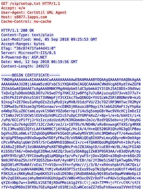 此命令将使用内置的Microsoft Windows certutil命令下载远程文件。在这个样本中,将检索以下脚本: