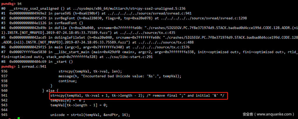 问题出现在svread.c中的parseSVG执行strncpy复制前长度判断不严。