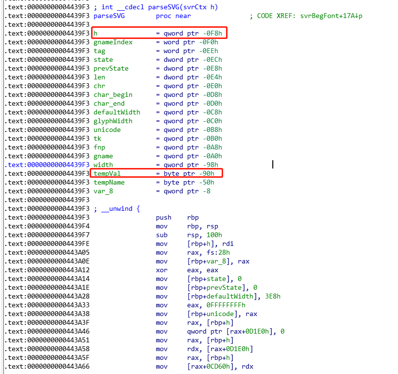 rip 0x496010 0x496010 <parseSVG+432>