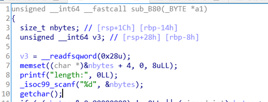他限制了我们输入的长度不能超过7,我们要想修改函数返回地址,payload不可能比7字节短,所以我们这里要找其他输入payload的方式,这里我们盯上了scanf函数。