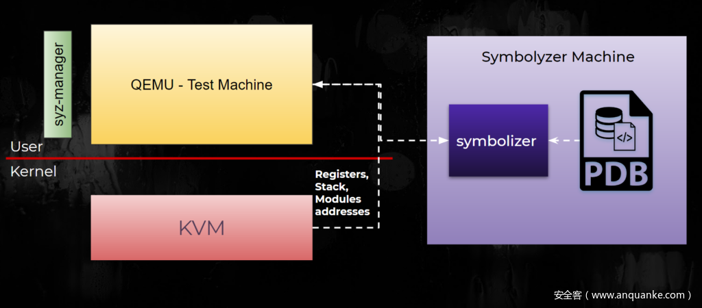 让Windows机器与fuzzer一起运行并不理想,而且我们认为在’go’中实现最小的内核调试器并将其编译为Syzkaller将会非常困难。