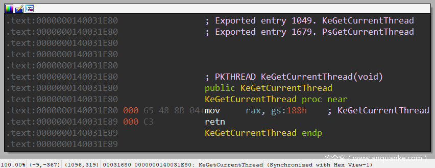 为了跟踪线程,我们需要一个用于上下文切换的hook。我们可以从全局段中获取当前线程: