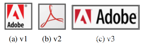 但是实验表明,通过上述常规方法训练Siamese模型来比较logo是无效的。Siamese模型的常规训练过程选择三个图像<Ic1,I’c1,Ic2>作为样本来计算三重态损失,其中Ic1和I‘c1属于c1类,Ic2属于c2类。训练的目的是确保同一类别(sim(Ic1,I’c1))中图像的相似度应大于不同类别(sim(Ic1,Ic2))中图像的相似度。同一品牌下的logo可能会有很大差异(例如上图)。很难强迫模型学习相同品牌的不同logo变体的相似代表向量(例如,图a和图b)。从进行的实验中,观察到如果迫使模型达到这一具有挑战性的目标,则会产生将不同类别的品牌预测为相似的副作用。