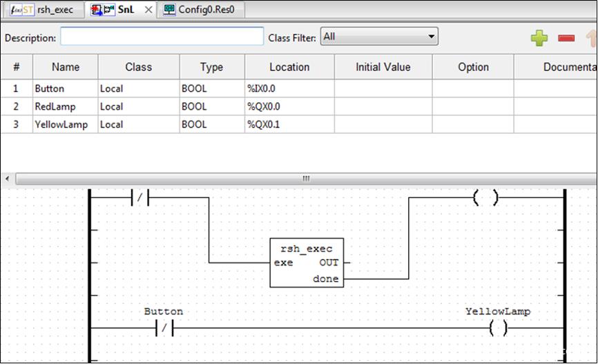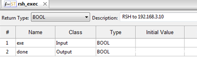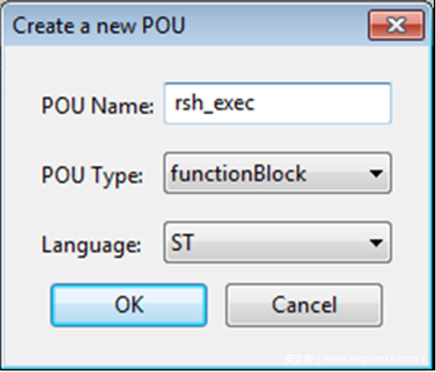 输入一个功能块的名字,这里为了明显,名字选择rsh_exec,同时编程语言选择ST(结构化语言“类似于Pascal”)