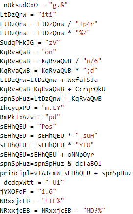 但自今年以来,我们观察到该组织对脚本的混淆等级进行了提升,代码可读性几乎为0,分析人员想要用肉眼提取有效信息的可能性基本不存在: