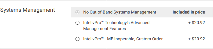 一名Reddit用户上周表示发现戴尔修改了在线商店,允许消费者购买不含ME的英特尔电脑。