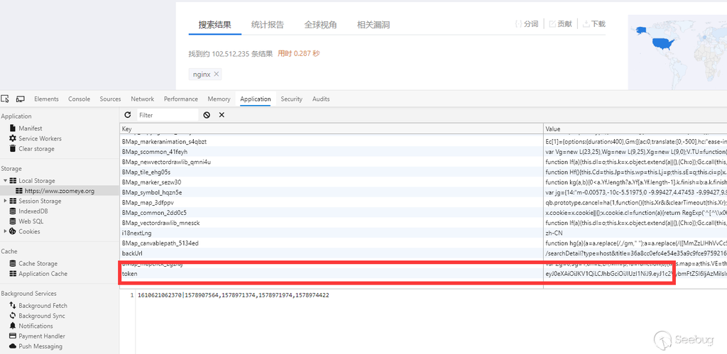 如果浏览器当前在登录状态时,则会跳转回ZoomEye并将相应的数据写到localStorage里。