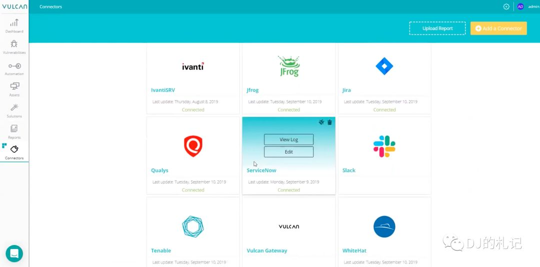 上图中Vuln Source来源是什么呢?如下图界面所示,Vulcan内置提供很多产品的接口,检测有Qualys、Tenable等,解决有Ivanti、ServiceNow等。
