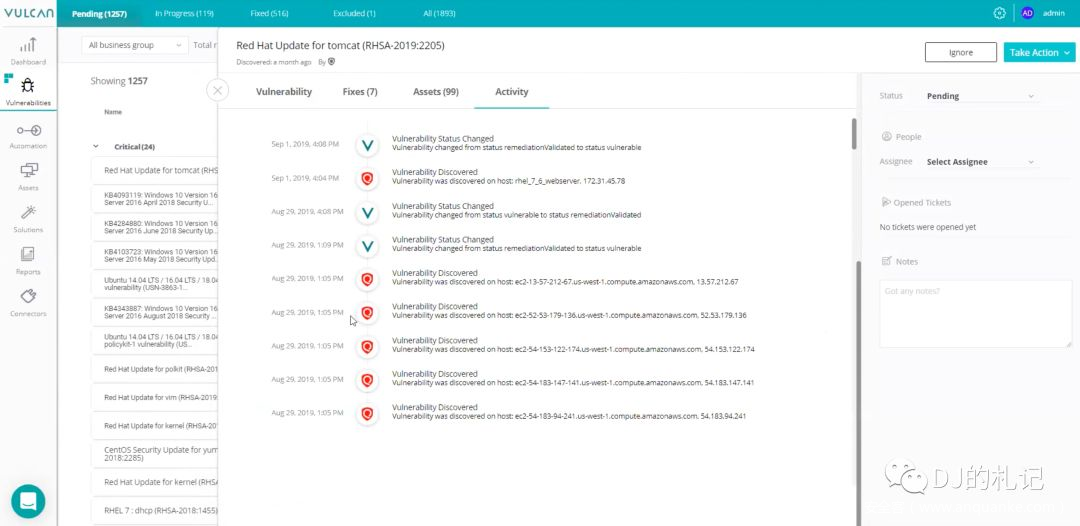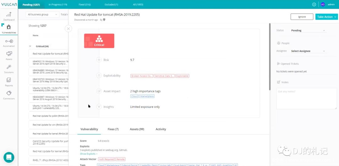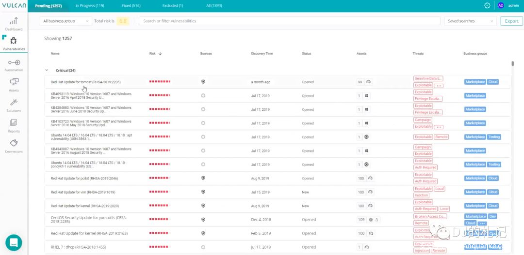我们继续看些Vulcan Cyber的产品界面,下面是漏洞相关的。