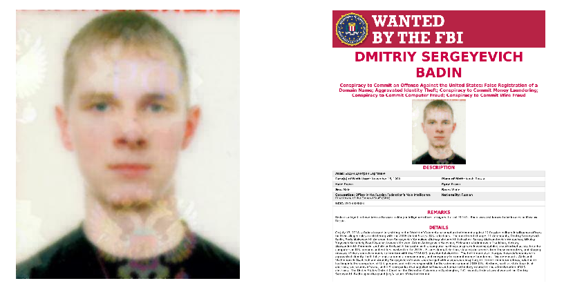 调查人员用俄罗斯社交媒体,反向图像搜索应用程序FindClone,在德米特里·巴丁妻子的VKontakte (VK)社交账户中,找到德米特里·巴丁的照片。然后,通过在微软Azure的人脸验证工具中比较两张照片来重新验证后,他们认为这是同一人。