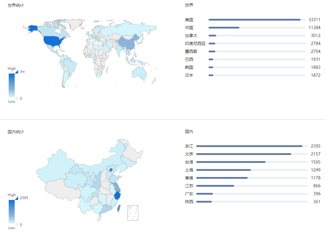 根据360安全大脑测绘云(QUAKE网络空间测绘系统)数据,截至2020年7月10日,全球至少有80000台存在此漏洞的资产,具体分布如下图所示: