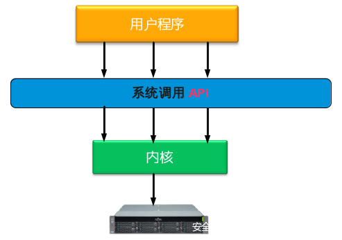 层层递进,来实现用户态到内核态的转换,系统调用好比一个协调者,来沟通运行在用户态的应用程序和运行在内核态的程序的交互,也就是说,内核只是和系统调用打交道;而我们程序员只需要和相应的api打交道就行,而不用去关心底层的具体系统调用怎么实现,因为api已经把一切细节都封装好了。