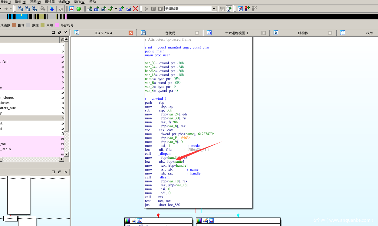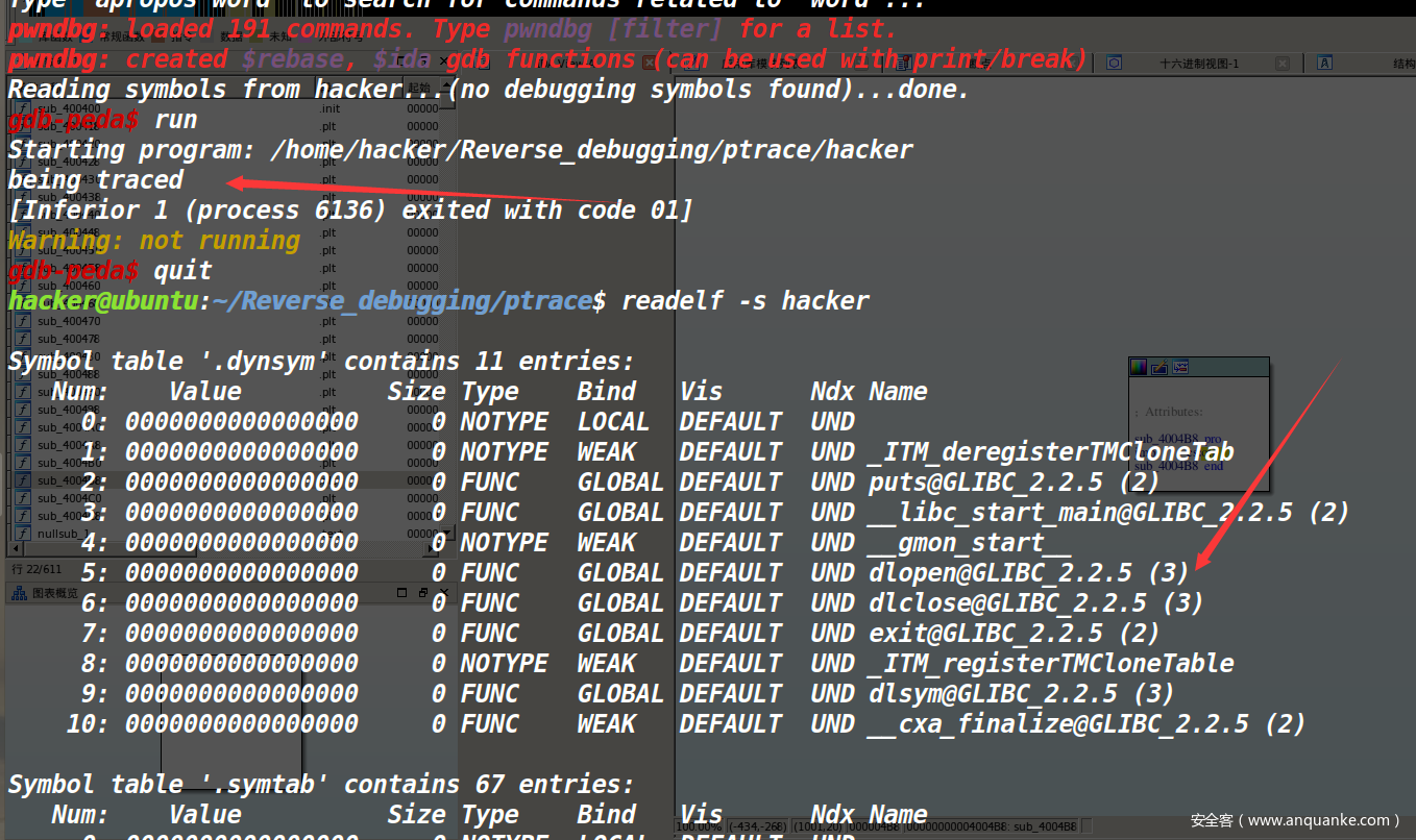 这里只针对那些动态链接共享库的程序,局限性很大,通过创键本地自定义的伪造库,使用LD_PRELOAD来劫持ptrace调用库为我们自定义的伪造库,这样就起到了狸猫换太子的效果!