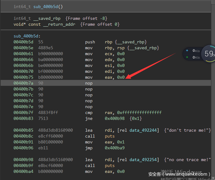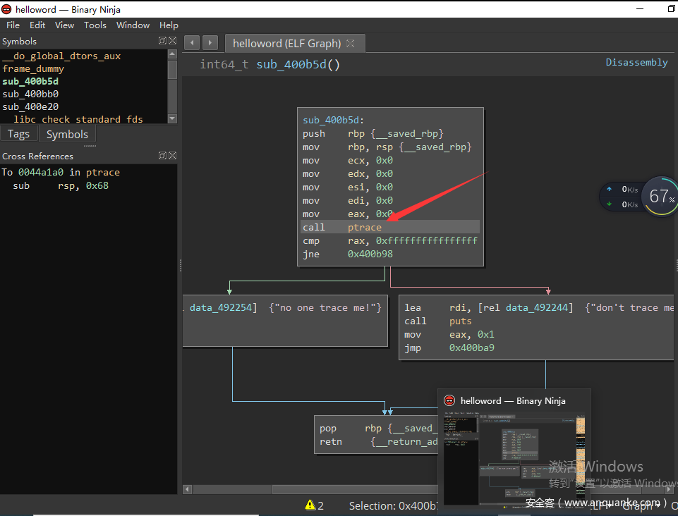 2.直接通过Binary Ninja查找ptrace调用然后nop替换