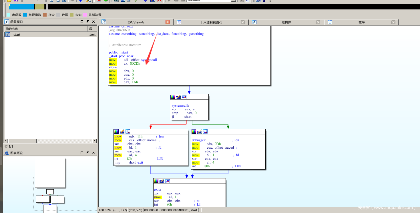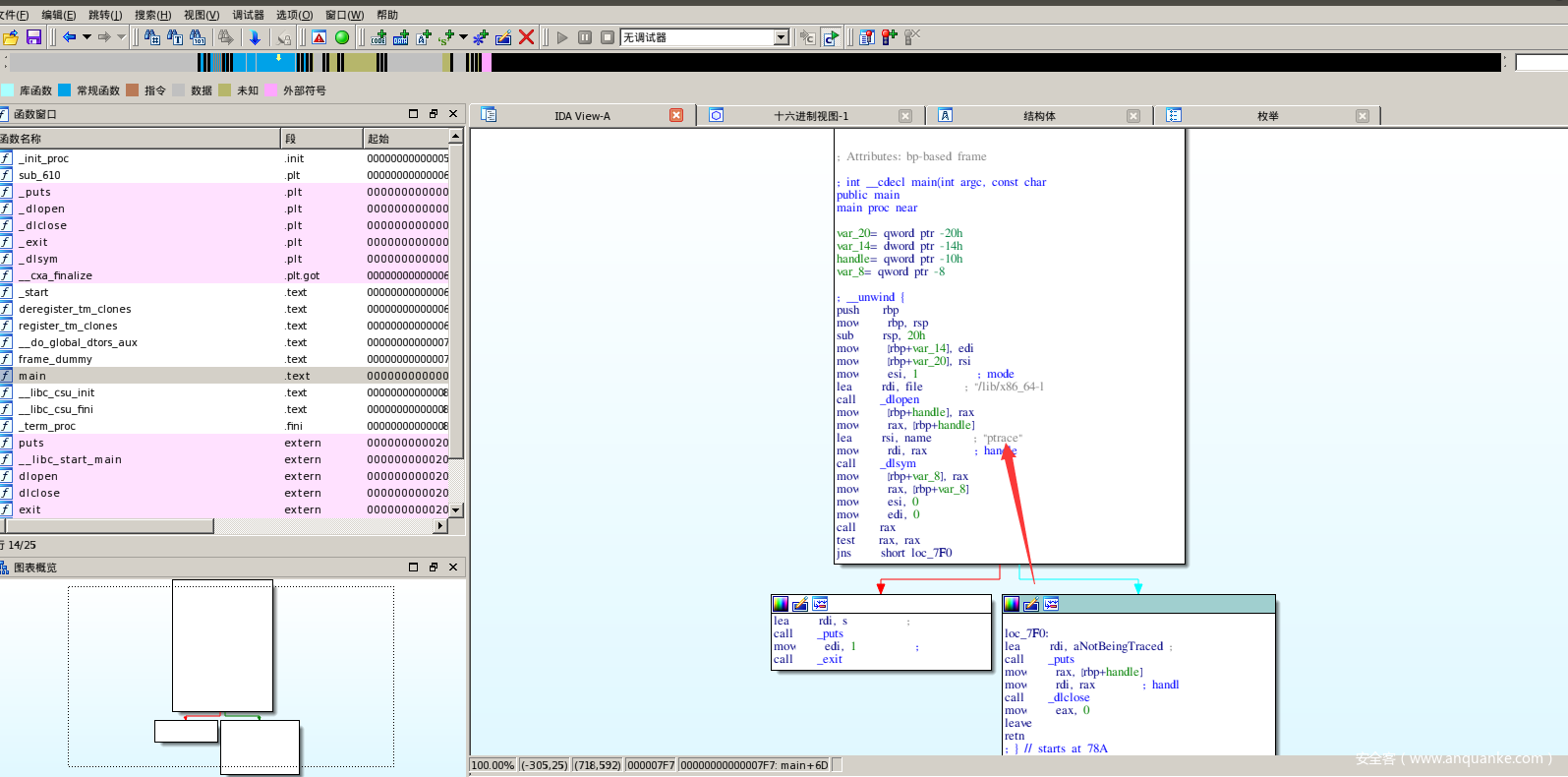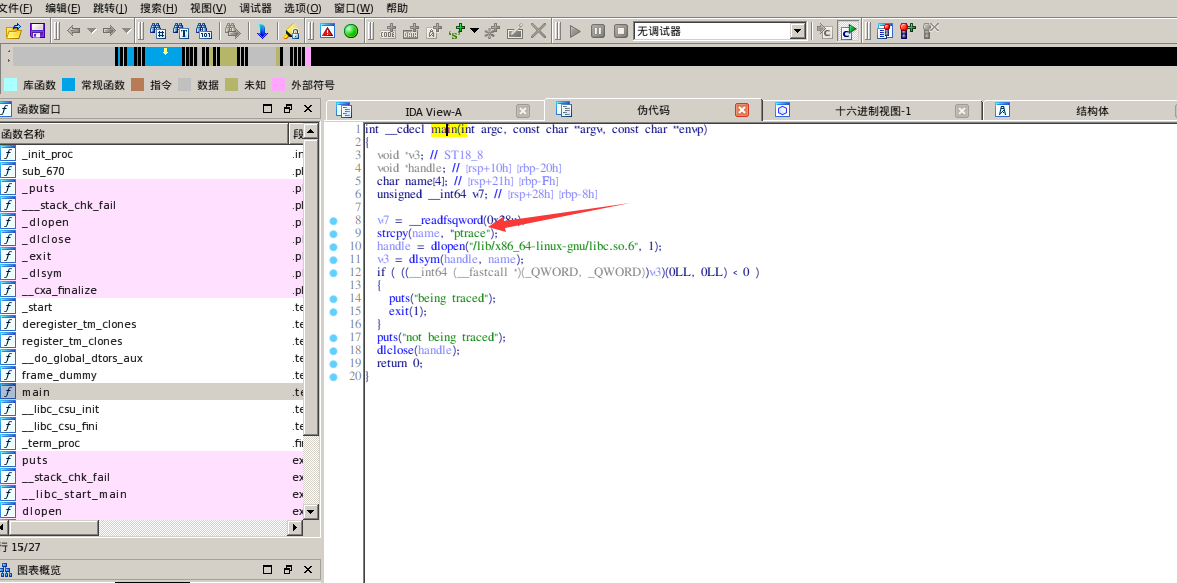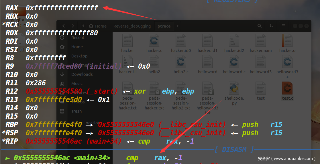 1.通过gdb修改eax(64位rax)中的返回值来绕过ptrace