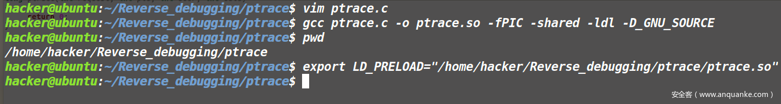 export LD_PRELOAD="/home/hacker/Reverse_debugging/ptrace/ptracE.SO"