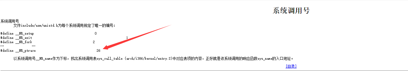 _NR_name作为下标,可找出系统调用表sys_call_table(见arch/i386/kernel/entry.S)中对应表项的内容,它正好是该系统调用的响应函数sys_name的入口地址。