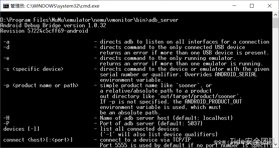 adb start-server adb -P <port> start-server #指定服务运行端口