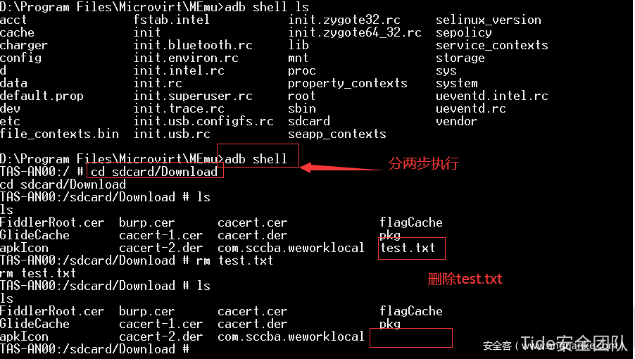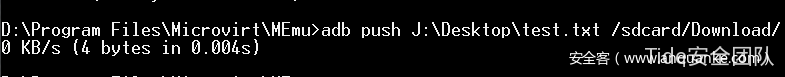 adb push file file2 #file计算机中的文件、file2传输到设备路径