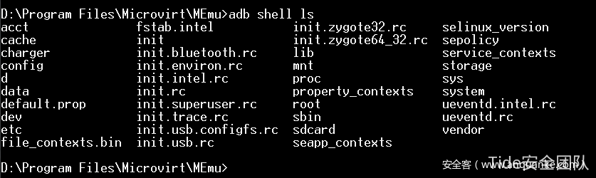我们上面说到adb的使用需要安装android sdk环境,然而现在常用的模拟器都自带了打包的ADB调试环境程序,下面以两款模拟器为例演示。