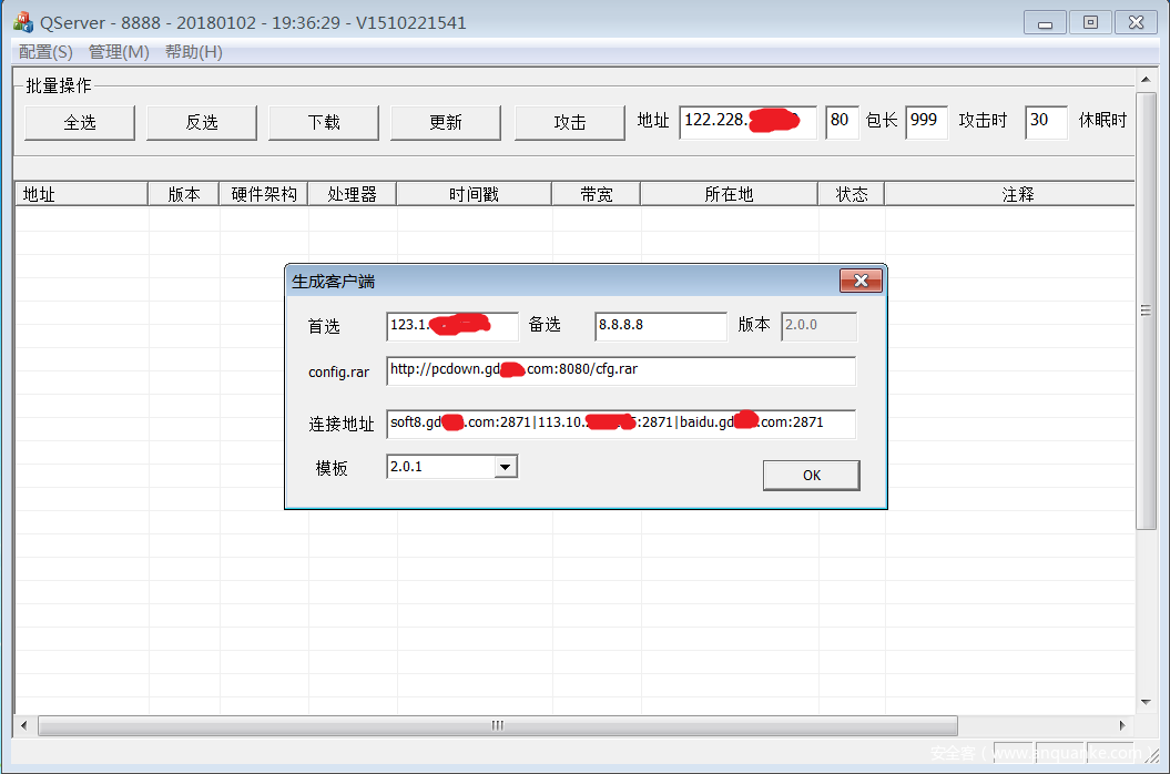 此外,我们还获得了黑客的控制端程序,其客户端配置界面如下: