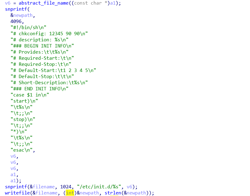 下图代码是尝试将自身作为服务写入到系统启动目录下,使样本每次能随着系统自启动。