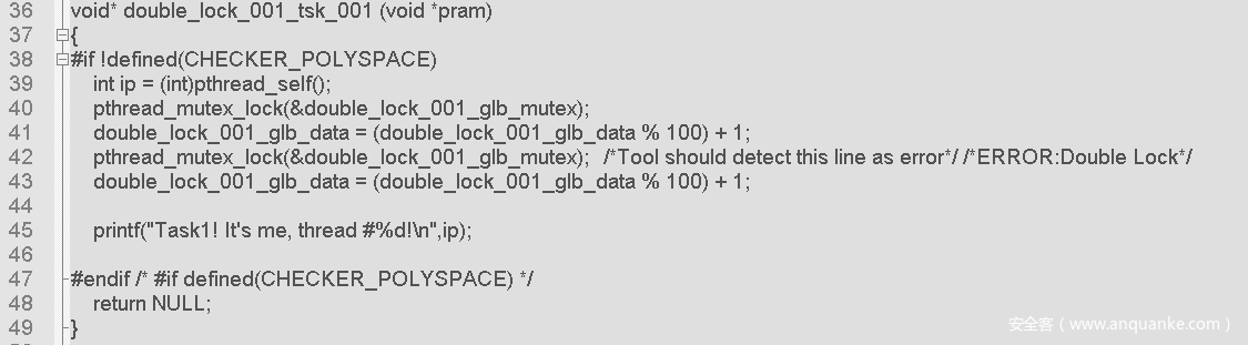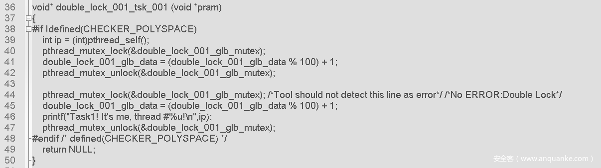 示例源于toyota-itc-benchmarks-master (https://github.com/regehr/itc-benchmarks),源文件名:double_lock.c。