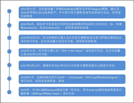 | APT组织介绍 | 军刀狮(APT-C-38)为卡巴披露的一个针对中东目标的APT组织,其主要通过Telegram和水坑攻击分发恶意软件,该组织也重点针对库尔德人目标。其攻击平台为Windows和Android。 |