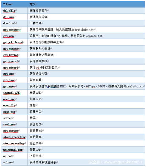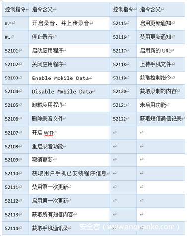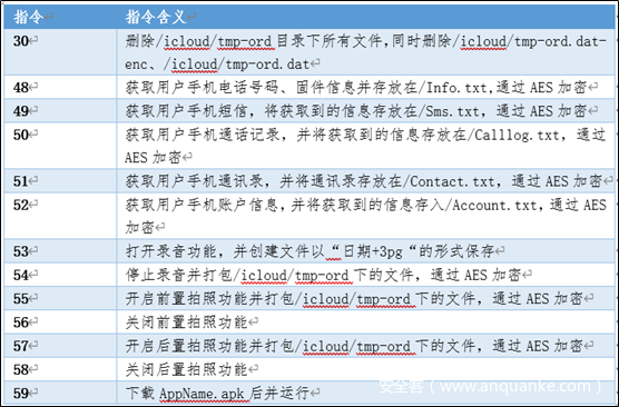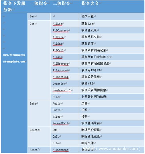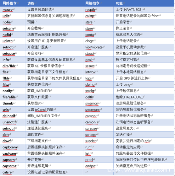 远控指令列表: