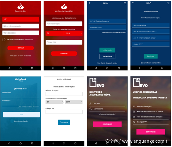 | Red Alert | Red Alert最早出现在2017年,但2019年依然活跃。其针对120家银行和社交网络应用。针对国家多为欧美,日本、印度也有发现。 | 尚未在Google Play出现。