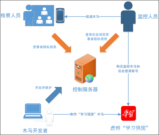 仿冒软件一直存在,恶意作者小到通过仿冒当下流行的APP,诱骗用户点击推送广告、推送软件以此获利;大到仿冒银行APP,仿冒第三方支付软件,窃取用户财产,进行诈骗等。2019年我们捕获到了大量的仿冒恶意软件,其中影响较大的有:仿冒银监会客户端,成功诈骗53万的电信诈骗事件;仿冒“学习强国”的恶意软件,针对检察机关工作人员的监控软件,该软件进行分析溯源后,我们已配合公安机关进行处理。