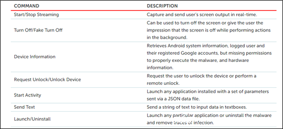 | Cerberus | 地狱犬为2019年新发现的Android银行木马,其目前正在地下论坛出租。目前为止仅适用七个法国银行、七个美国银行、一个日本银行、15个非银行应用程序。 | 尚未在Google Play出现。