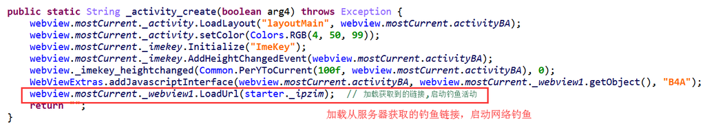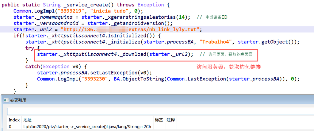 程序通过访问硬编码url的方式,获取钓鱼网页地址。通过这种方式,控制者可以随时更换钓鱼页面: