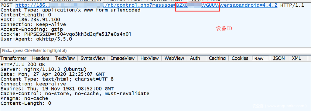 程序设置了定时任务,任务内容为每分钟访问指定链接,该链接参数中带有用户设备的ID,可用于识别。