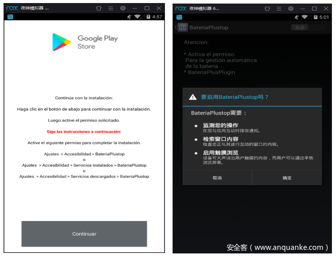 (1)增加了无障碍服务权限,诱导用户授予该权限,程序可以监控手机界面。