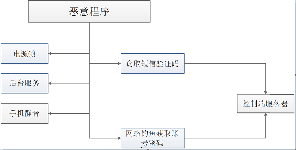 该样本运行后,会采用界面劫持,网络钓鱼的手段骗取用户的账号和密码,然后监听手机短信,屏蔽短信广播,使用户接收不到短信提醒,最后,上传用户短信内容、银行账户,密码等个人隐私到远程服务器,还有程序会通过后台服务、电源锁等保证进程不被系统杀掉;通过对手机静音、屏蔽短信广播等方式防止被用户察觉;通过设置定时任务发送心跳包监控程序运行状态,达到持久化监测用户手机。