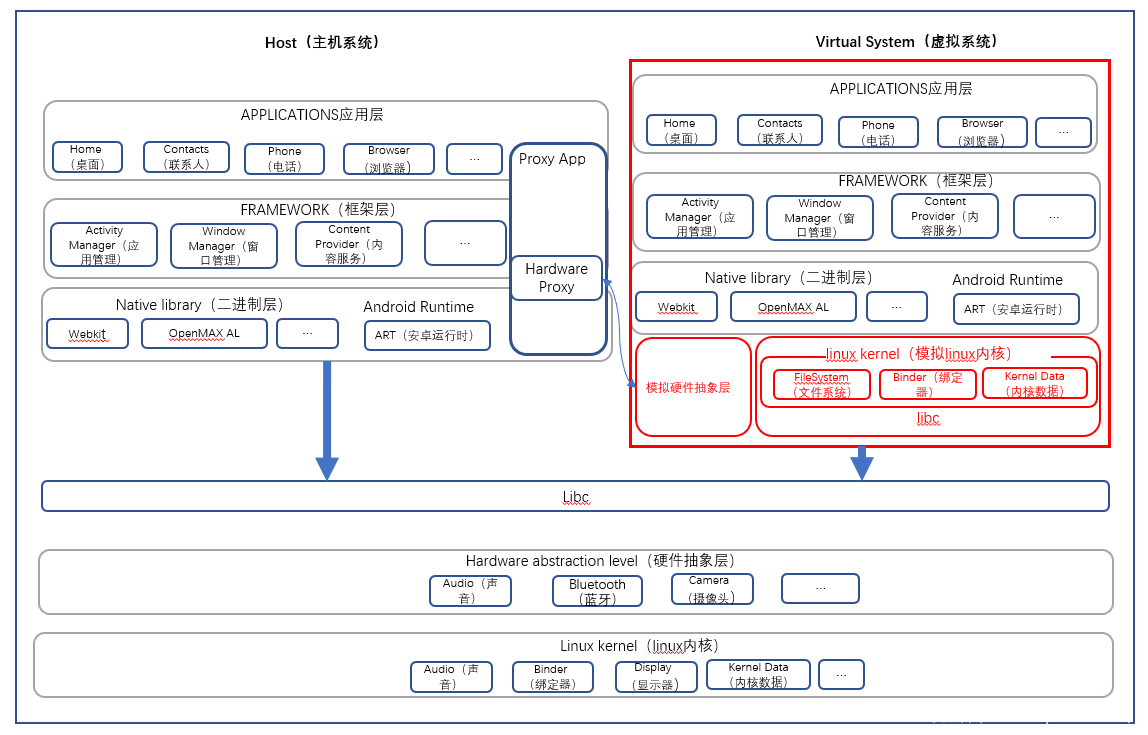 1,安全虚拟手机有独立于手机系统的内核和硬件抽象层,安全虚拟手机的内核数据、进程管理、内存管理、文件系统、设备管理独立于手机系统,具备完整的安全性。现有SDK方案或者沙箱方案和手机系统共用一个内核和安卓框架层,企业应用存在和手机上的其他应用进行通信和数据交互的风险。