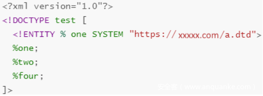 所以我这次不把所有的xml都放在请求里面,而是把一部分放到我的服务器上(加载外部DTD),所以这个网站会去加载xml的所有部分来解析,然后来响应我(我们已经可以用SSRF访问本地资源了,那么访问远程因特网的资源会怎么样?)